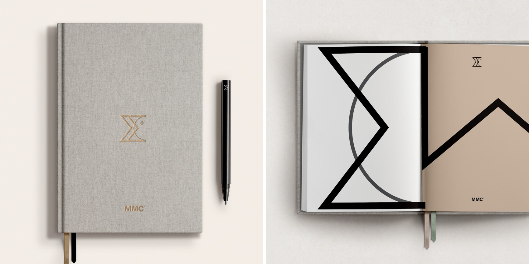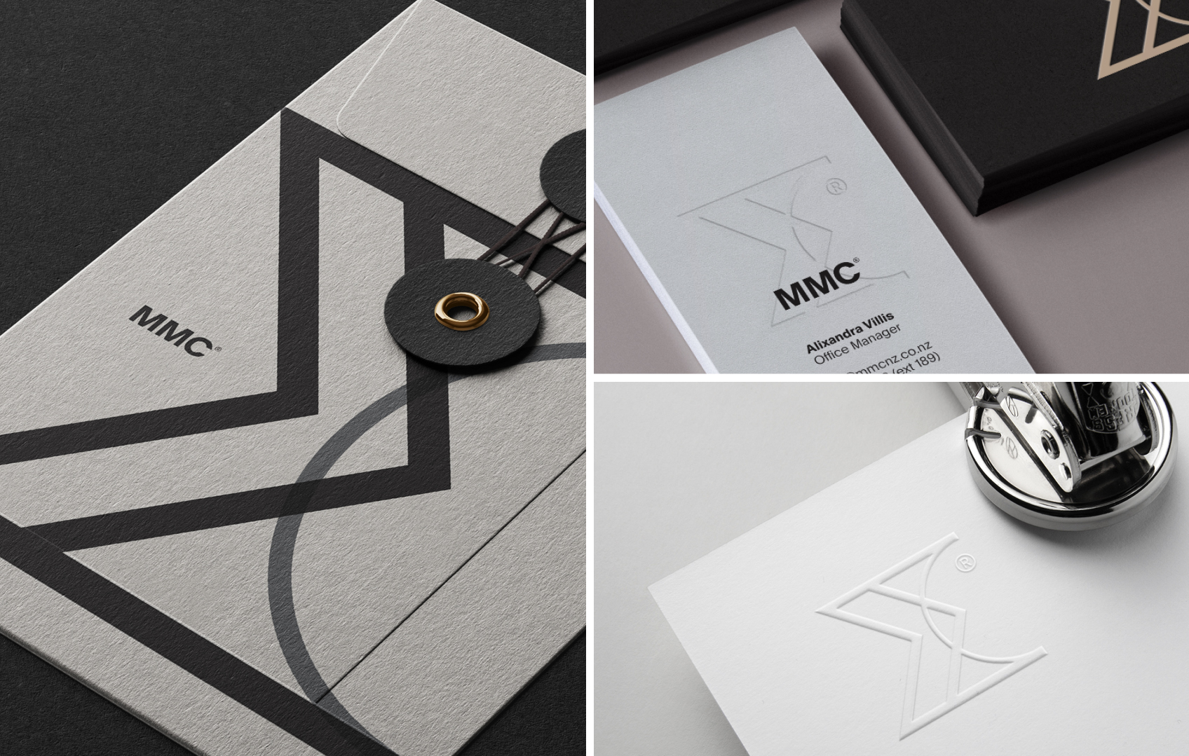Continuity between the old and new logo form was deliberate. Both contain the latin Symbol Σ - literally meaning sum. The graphic language all springs from this distinctive form. The MMC letterforms unite in strength to add an elegant monogram for the brand.
